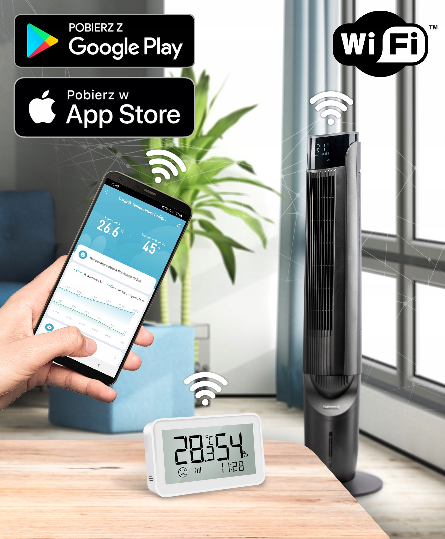 Ви можете легко керувати датчиком і охолоджувачем повітря за допомогою додаток на вашому смартфоні, де ви можете змінити налаштування, перевірити історію вимірювань і отримувати повідомлення про зміни температури.
