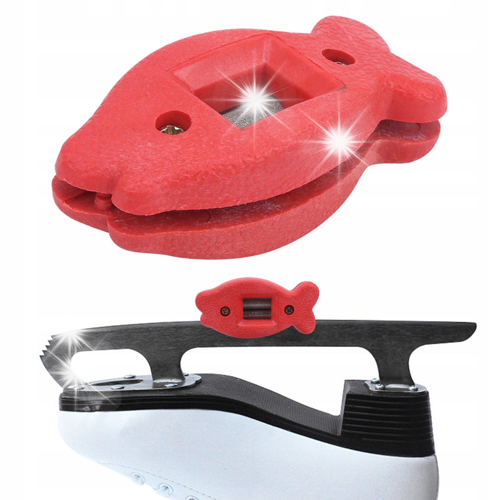 5. Портативна точилка відповідає ширині більшості лез для льоду, не впливаючи на зазор або радіус лез. Завдяки регулюванню підходить більшості хокеїстів і фігуристів. Його можна легко переносити за допомогою мотузки та гарної сумки для зберігання, а форму риби зручно тримати.