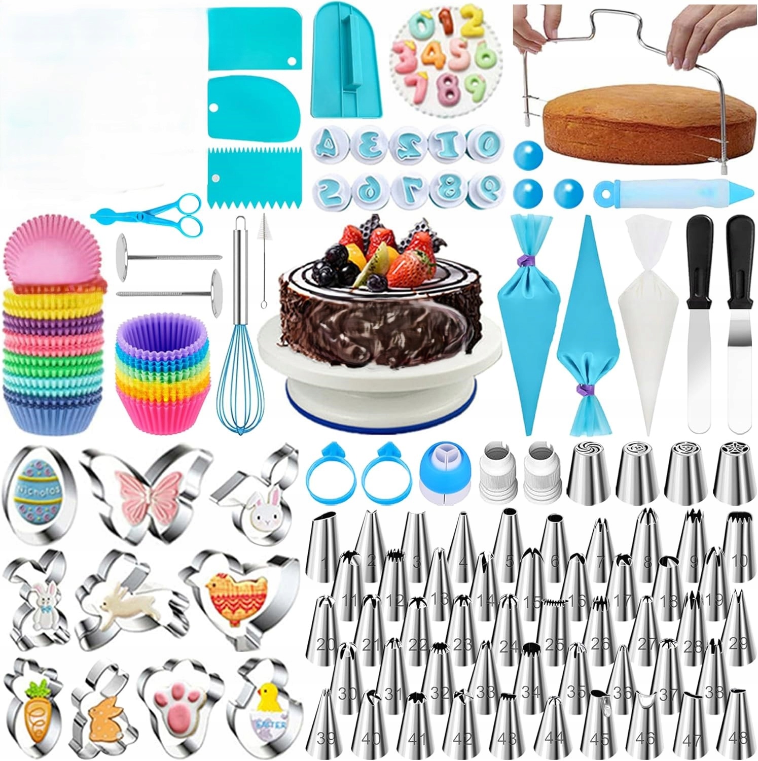 Безпека матеріалу: усі аксесуари відповідають стандартам якості харчових продуктів, виготовлені з високоякісної харчової нержавіючої сталі 304, силікону без BPA та високоякісного пластику з високоякісним не- токсичний, немає смак і легко миються, допоміжні аксесуари включають в себе інструменти для приготування різноманітних тортів (карвінг, російські квіти), кексів, печива, номерок і т.д.
