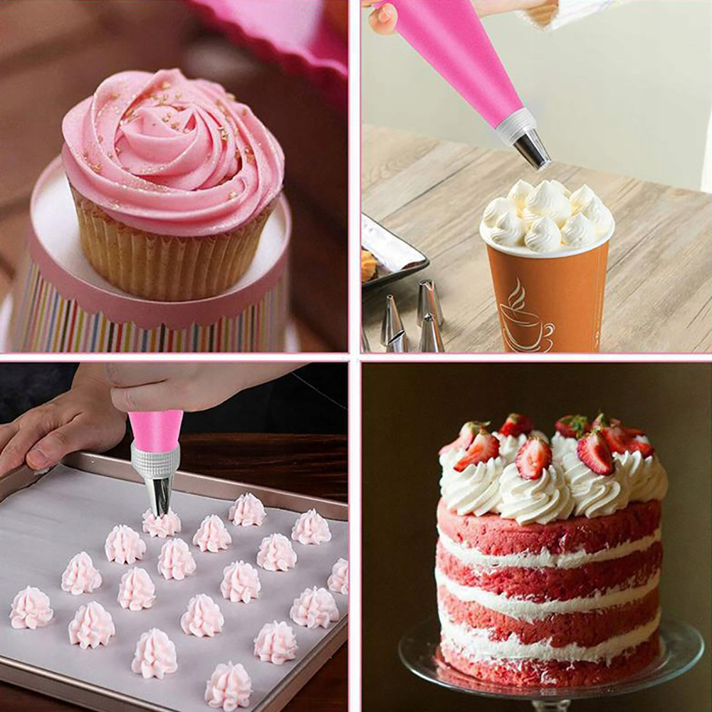 Завдяки нашому кондитерському мішку зі змінними наконечниками, шпателями та гребінцями ви можете легко досягти професійних результатів. Набір з 28 наконечників рукавів дозволяє створювати різноманітні візерунки. Збірка всього набору надзвичайно проста, як і його розбирання та чищення. Просто промийте силіконову втулку та багаторазові леза під водою з миючим засобом — сталеві наконечники можна мити в посудомийній машині!