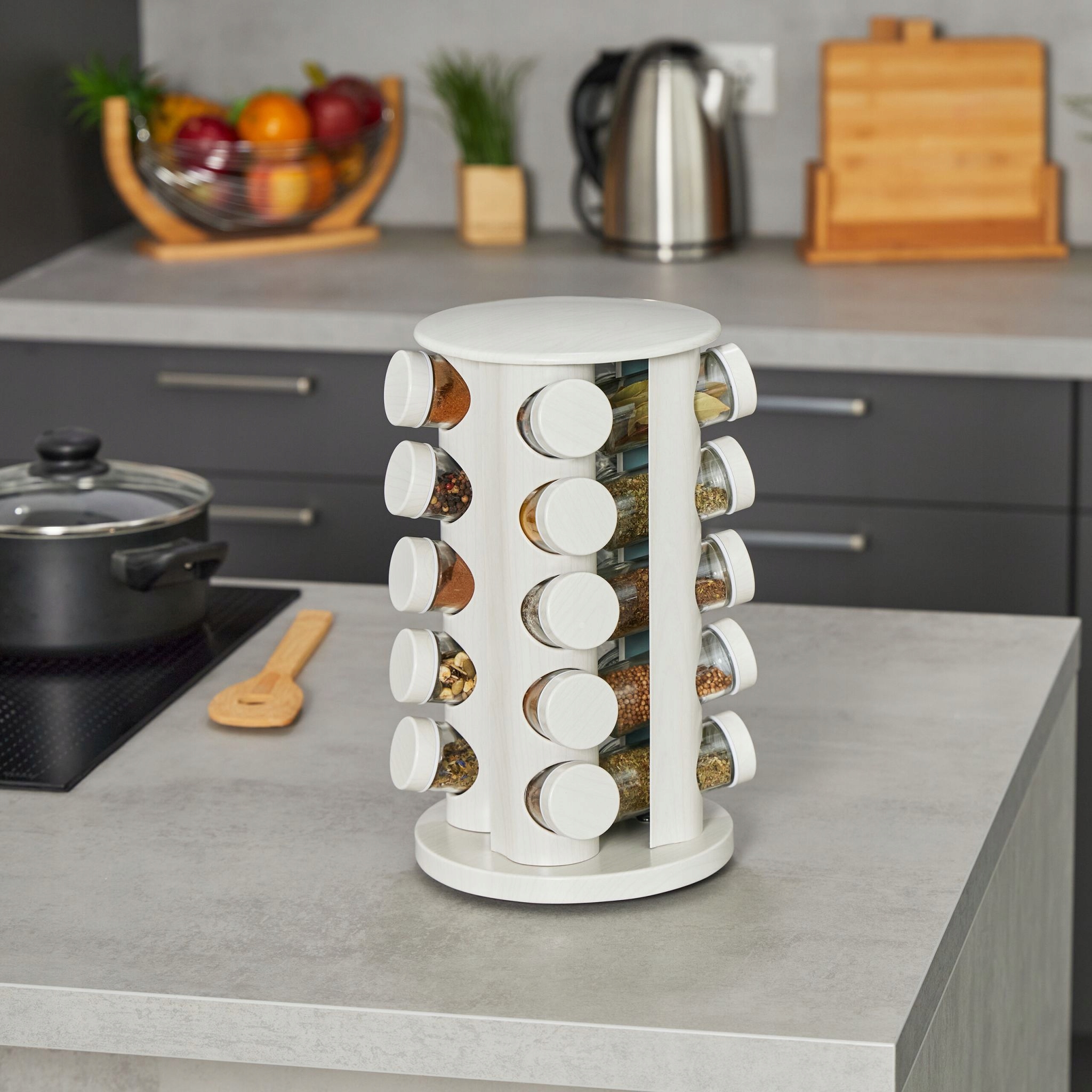 Чейс з хаосом у ваших кухонних шафах! Завдяки нашим сучасним спеціям з нержавіючої сталі ви нарешті замовляєте їх. Ця спеція з 20 скляними контейнерами підходить для зберігання всіх пухких спецій - від солі до каррі. Завдяки пластиковому обертовому диску, цей організатор спецій може бути обертається на дні, саме тому спеції завжди у ваших кінчиках. Наш 5-рівний інструментарій спеції оснащений банками з дозатором, який полегшує приправу.