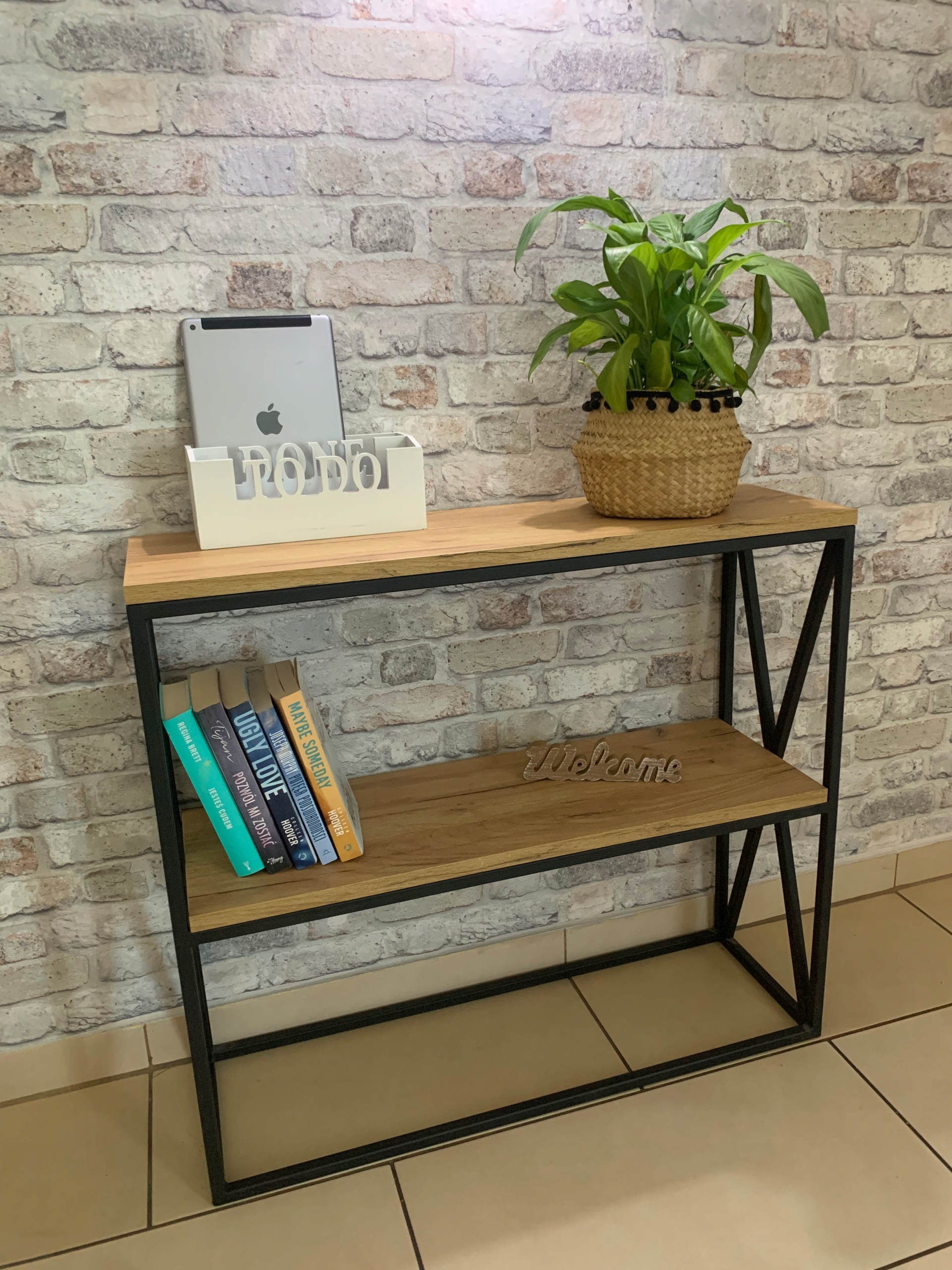 КОНСОЛЬ, ГАРАБОТКА ІНДУСТРІАЛЬНОГО СТИЛЮ,ЛОФТ З ДОДАТКОВОЮ ПОЛИЦЮ 80X25X72