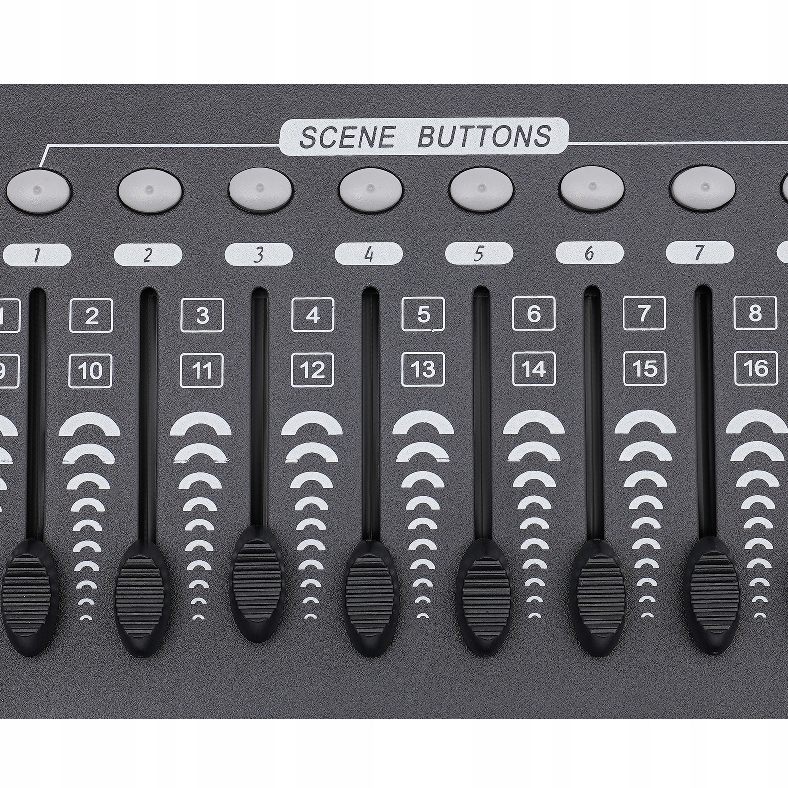 - 192 канали: він має 192 канали, тому ви можете керувати 12 пристроями за допомогою 16 каналів. Він також містить 240 наборів попередньо встановлених сцен і 6 програмованих попередніх налаштувань, а також вбудовані різні ефекти кривої, світлові ефекти, світлові ефекти тощо, що дозволяє викликати сцени та перемикати сцени за бажанням.