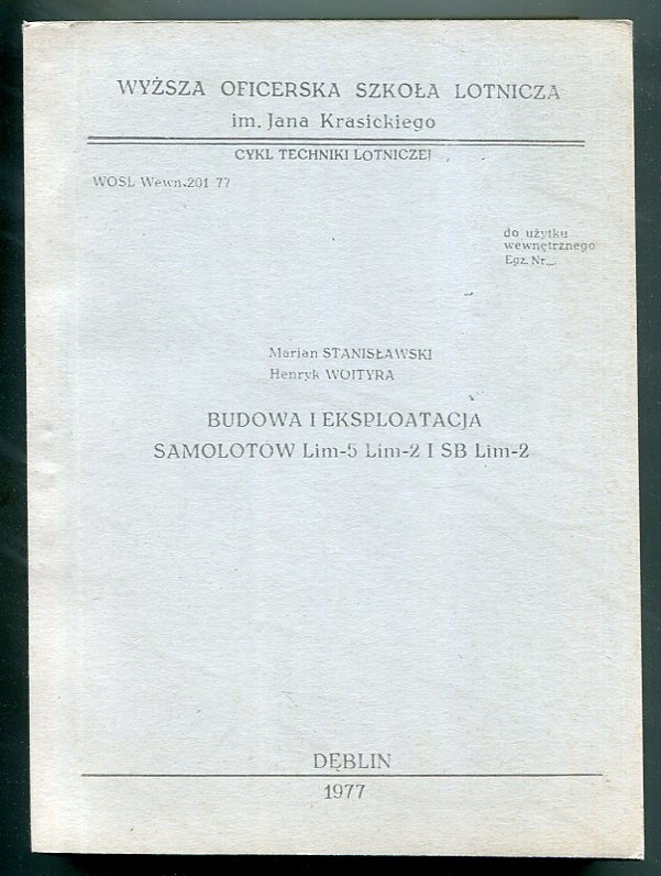 КОНСТРУКЦІЯ та ЕКСПЛУАТАЦІЯ ЛІТАКА Lim-5 Lim-2 та SB Lim-2 ::: оригінальне, досить рідкісне видання, автори Маріан Станіславський та Генрик Войтира