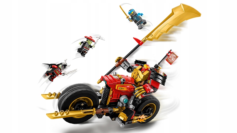 З цим насиченим діями Kaia EVO Rider Mech Set (71783) маленькі конструктори віком від семи років і любителі крутих транспортних засобів можуть створити власні битви між добром і злом. Містить рухливий механізм і крутий велосипед, який можна покращити золотими бічними панелями та великим золотим клинком.