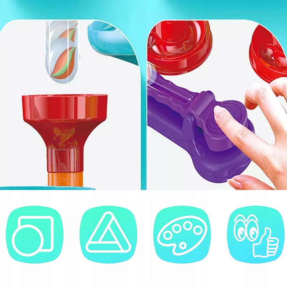 ✨- Ви можете будувати різноманітні споруди, як-от пандуси, тунелі, вітряки тощо. Коли закінчите, киньте кульки через отвір угорі та спостерігайте, як вони котяться.