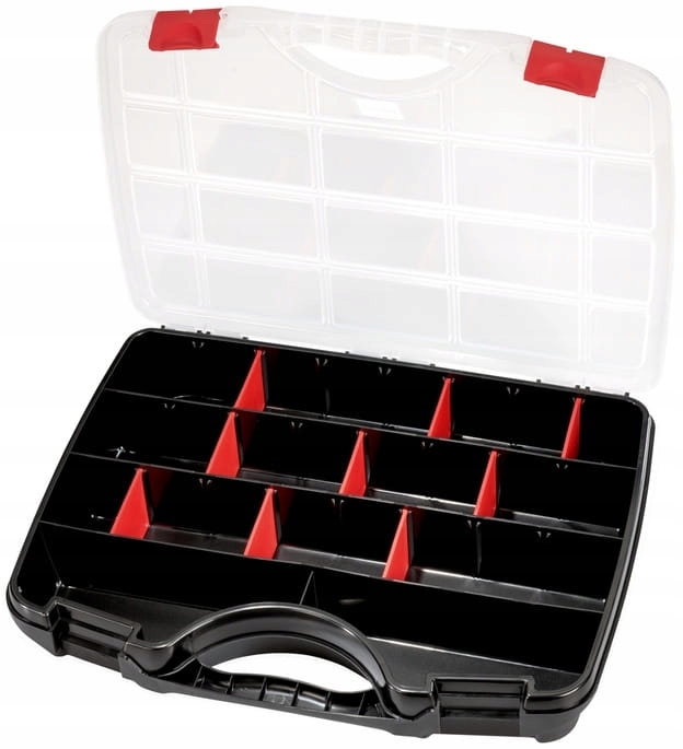 Органайзер має 2 коротких і 3 довгих відділення, які можна розділити на менші (до 26). Містить 20 перегородок для поділу відділень.