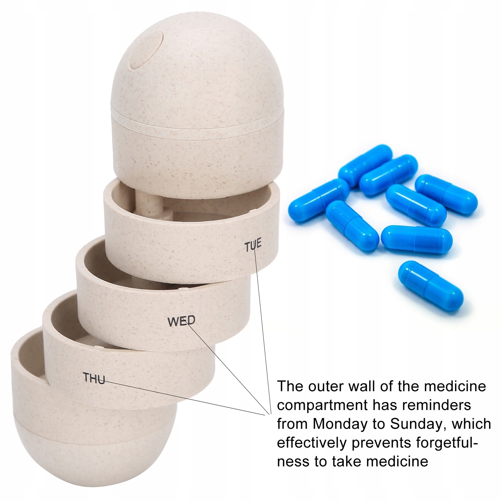 ⏺З понеділка по неділю є нагадування на зовнішньому стінка відсіку для ліків відповідає вашим потребам у ліках протягом тижня та ефективно запобігає забуттю прийняти ліки.