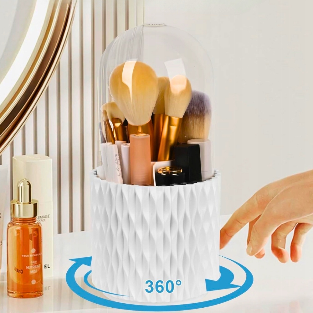 Забудьте про безлад і марнування часу на пошук потрібних інструментів. Система обертання на 360° забезпечує легкий доступ до будь-якої щітки чи косметичного засобу.