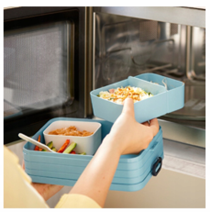 Насолоджуйтесь саме тим, чим хочете, саме там, де хочете. Завдяки ланч-боксу Bento з двома різними вкладишами Bento та виделкою для перекусу ви можете взяти їжу в дорогу на роботу чи школу.