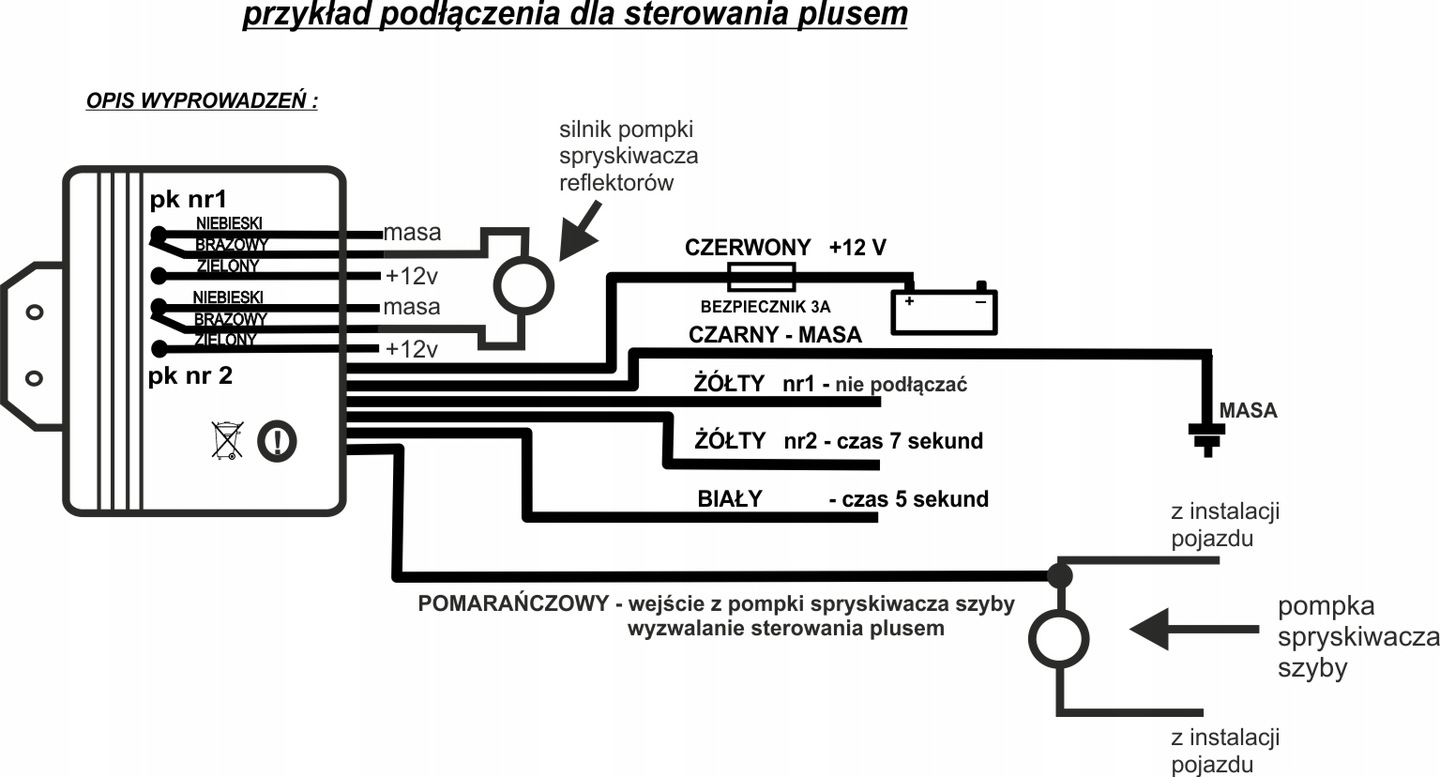 Контролер також можна використовувати для керування оригінальним насосом омивача фар, щоб увімкнути його через 3 секунди після ввімкнення омивач лобового скла. Завдяки цьому ми отримуємо контроль над витратою рідини та можемо намочити лобове скло, не вмикаючи омивачі фар.