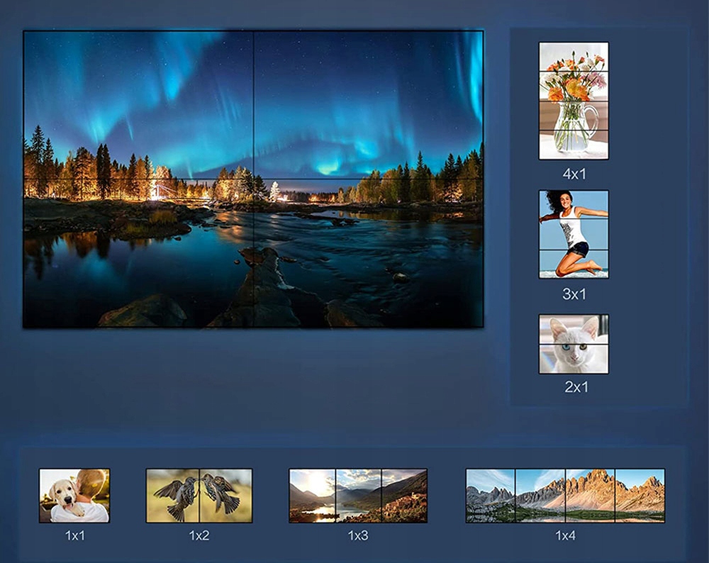 Завдяки розширеним режимам зображення можна вибрати до 8 режимів відображення. Wall Controler має декілька режимів роботи/відображення зображень з одного джерела: