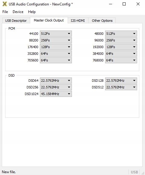 Вихідну частоту MCLK можна налаштувати індивідуально для будь-якого формату за допомогою інструменту налаштування, доступного на сайт виробника. Від 64Fs до 512FS і від 2,8224 МГц до 49,152 МГц.