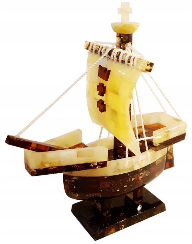 Пропонований бурштиновий корабель є абсолютно новим і є результатом співпраці між нами та місцевим майстром бурштину з Гданська, який займається створенням та дизайном вітрильників, кораблів та статуетки з бурштину щодня. Елементи корабля виготовлені з натурального та справжнього бурштину.