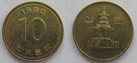 Корея 10 вон 1990