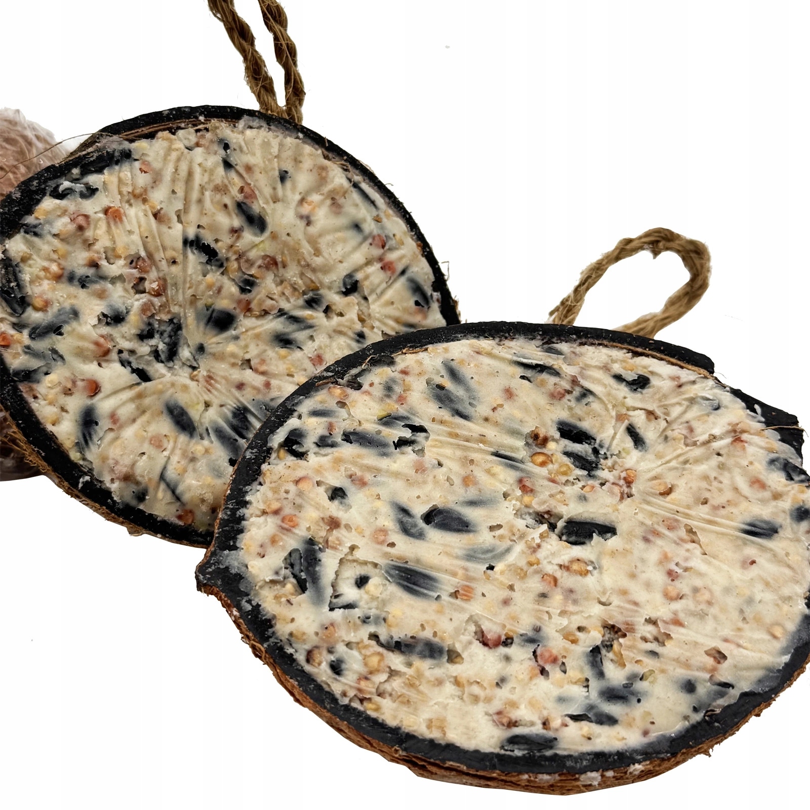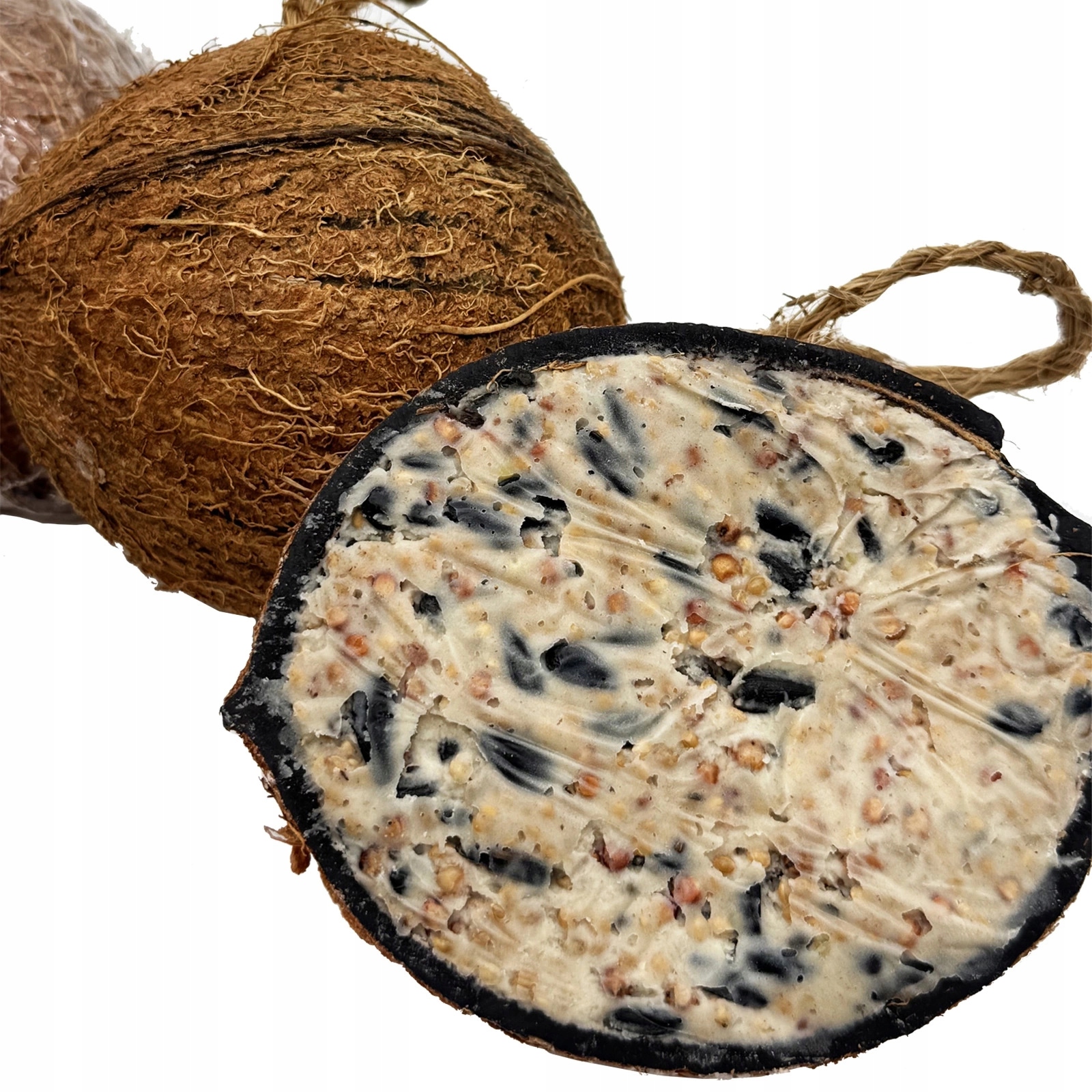 Суспендований жирний зимовий корм у шкаралупі кокосового горіха з різними добавками.