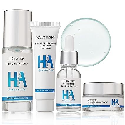 Відкрийте для себе KORMESIC HA Зволожуючий набір гіалуроновою кислотою, що містить 4 продукти: Очищаючий гель, зволожуючий тонік, вершки та сироватка! Цей всеосяжний набір забезпечує глибоку гідратацію, полегшення та регенерацію шкіри, ідеально підходить для весняного догляду. Формула з гіалуроновою кислотою працює на будь -якому типі шкіри, залишаючи її гладкою та сяючою. Повна турбота в одному наборі! ❤