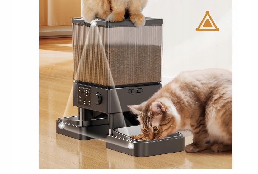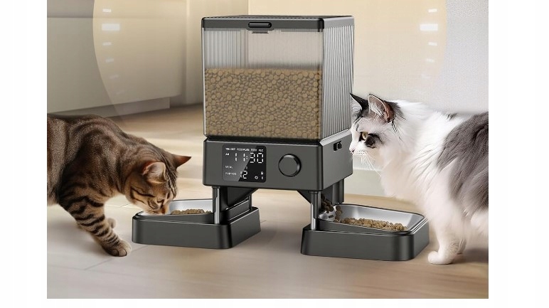 Автоматична годівниця Oneisall для кішок, 5 л, 2 миски оснащена поворотним корморозділювачем, який забезпечує рівномірний розподіл їжі.