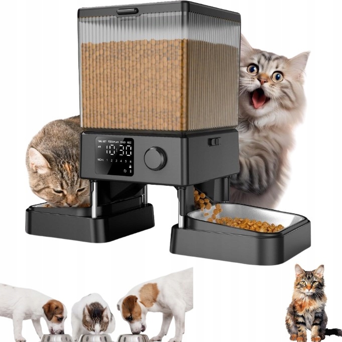 Автоматичний дозатор корму Oneisall - це практичне та зручне рішення для власників маленьких та середніх домашніх тварин. 5-літрова ємність означає, що ви можете наповнювати її рідше, а дві сталеві миски дозволяють годувати більше однієї тварини одночасно.