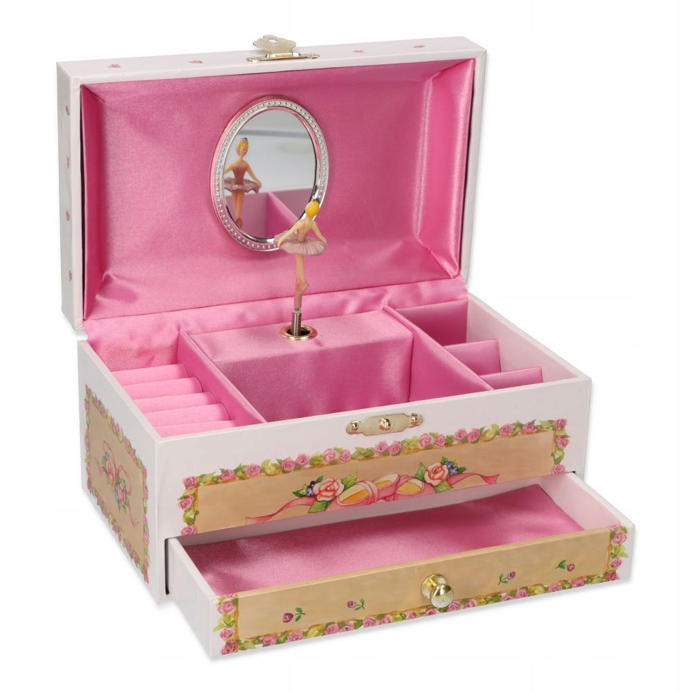 Ця красива скринька з музичною шкатулкою стане в нагоді кожній дівчині для всіх її дрібничок чи прикрас. Кольори дозволяють вписати його практично в будь-який інтер'єр. Фігурка танцюючої балерини на коробці додатково додає класу та шарму цій унікальній музичній скриньці.