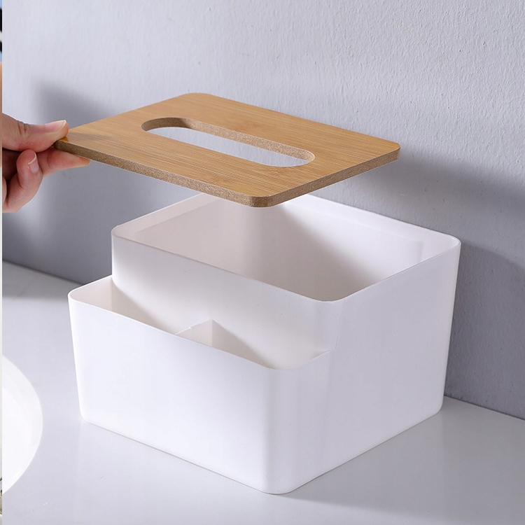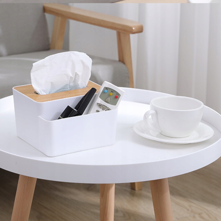 Практичний контейнер для серветок, який підійде в будь-якій кімнаті. Оптимальні розміри дозволять вам зберігати велику кількість серветок, а це означає, що вам не доведеться про це часто турбуватися заправка контейнера.. Стильне поєднання білого кольору з бамбуком надає натуральності, роблячи його додатковим декоративним елементом. Окрім місця для серветок, контейнер оснащений двома відділеннями, де можна розмістити інші необхідні речі