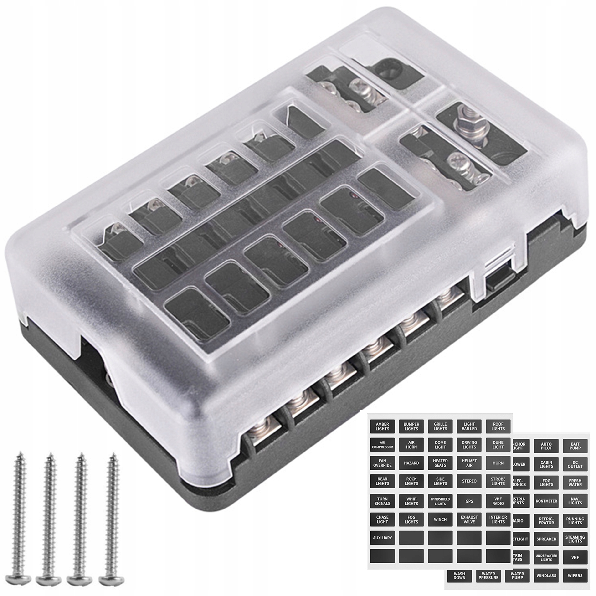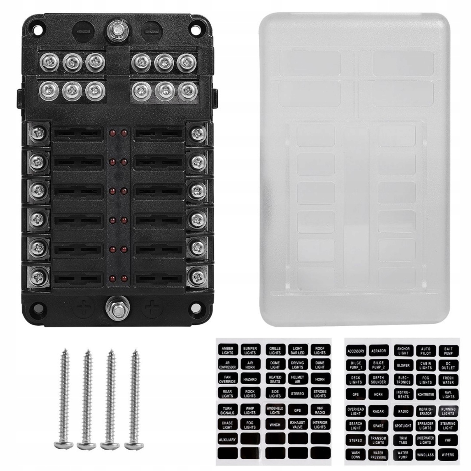 12-льодовий запобіжник блоку 12 В, 12-масштабних запобіжників ATC/ATO з водонепроникною кришкою індикатора для вантажівки 12 В/24 В, łódź море, Автомобілі та фургони для кемпінгу