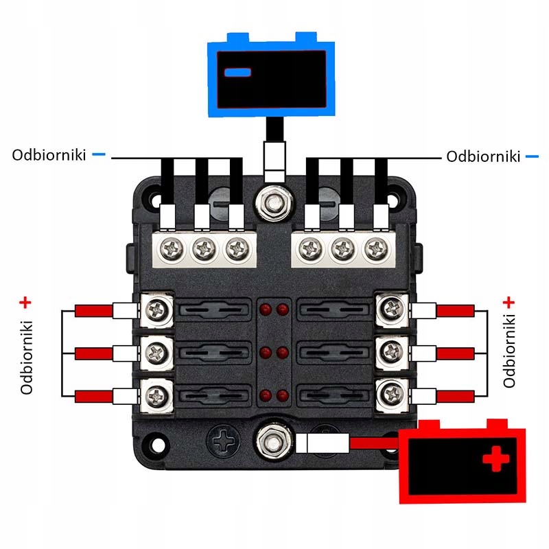 запобіжник для яхти або каравану. Це дозволяє закріпити 6 електричних ланцюгів. У комплекті з запобіжниками, кришкою ПВХ, ідентифікаційними наклейками та гвинтами. Пропозиція також включає 12 периферійної версії.