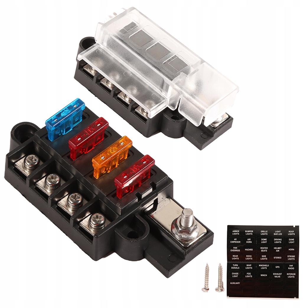 Професійна автомобільна коробка запобіжників із 4 ланцюгами, що забезпечує надійний електричний захист вашого автомобіля. Оснащений прозорою ізоляційною кришкою для захисту від пилу та вологи.