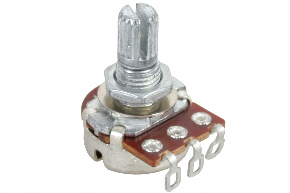 A250K - логарифмічний потенціометр, найчастіше використовується як потенціометр гучності в гітарах з однокотушковими звукознімачами. Це модель з так званим «маленьким ящиком» - 16,5 мм в діаметрі.