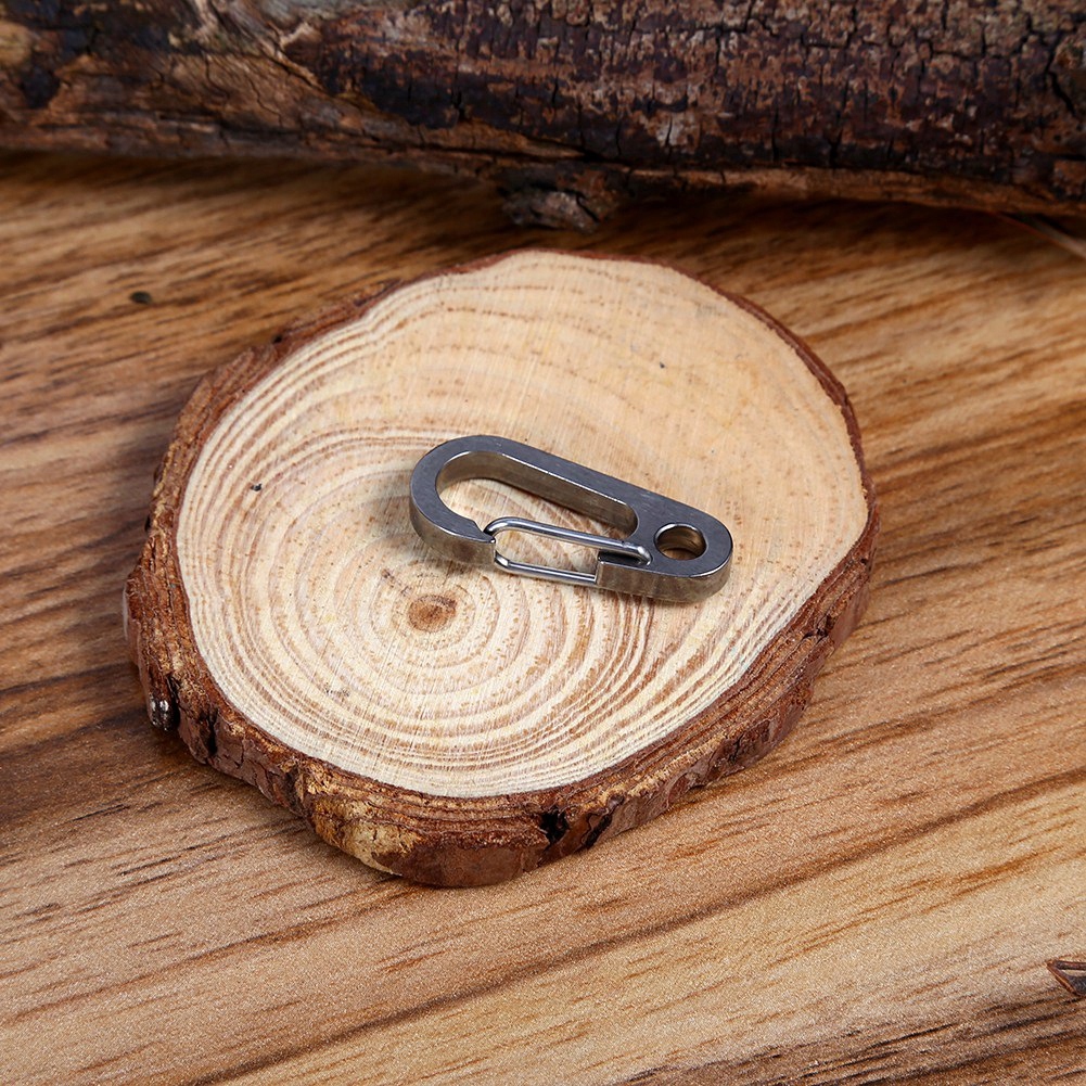клавіші з карабіном виготовлений з титанового сплаву, стійкого до високої температури, світла та високої міцності. Дуже зручно взяти його з собою. Він широко використовується, його можна використовувати щодня, прикріплений до рюкзака, гаманця або використовується як ключове кільце.