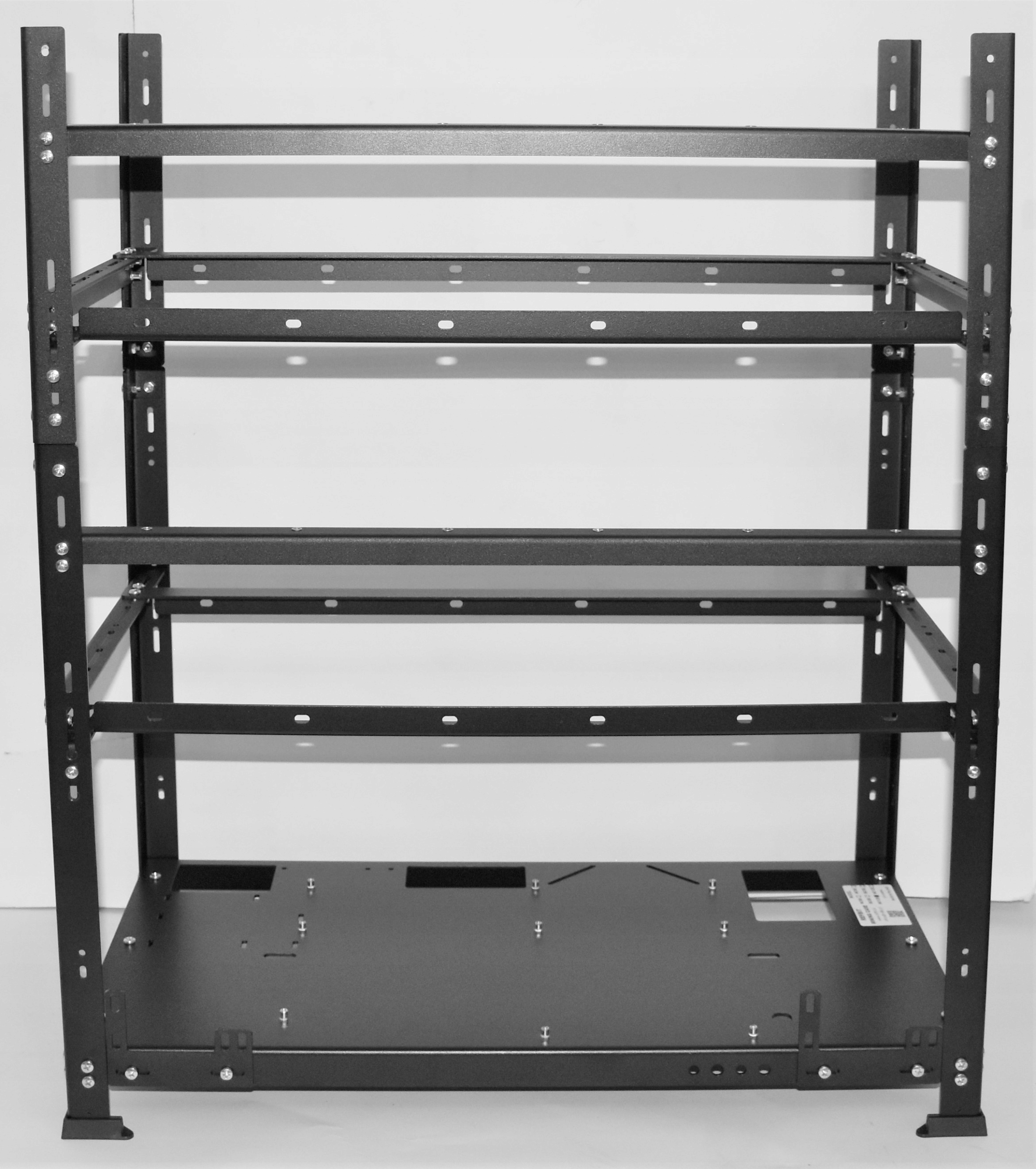 - корпус дозволяє встановити 12 відеокарт і 4 блоки живлення (два поруч материнська плата та два для задніх ніжок корпусу)