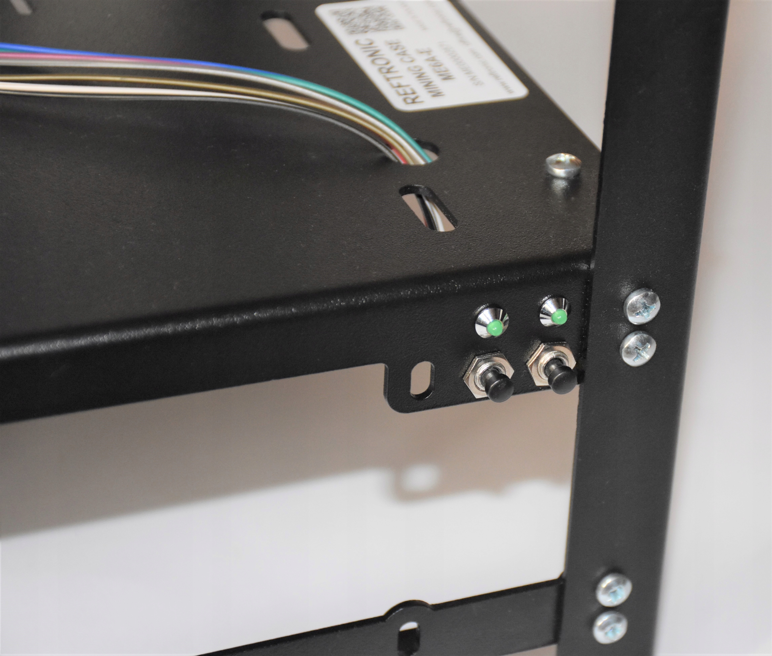 Установлено два перемикачі скидання, модель MS60, і два світлодіодні індикатори, модель ML60. Ці запчастини доступні на інших наших аукціонах. Перемикачі працюють як POWER SWITCH і RESET SWITCH, тоді як діоди працюють як POWER LED і HDD LED відповідно. Індикатор жорсткого диска блимає, повідомляючи нам, чи працює комп’ютер чи ні. Дуже корисно для майнінгу криптовалют.