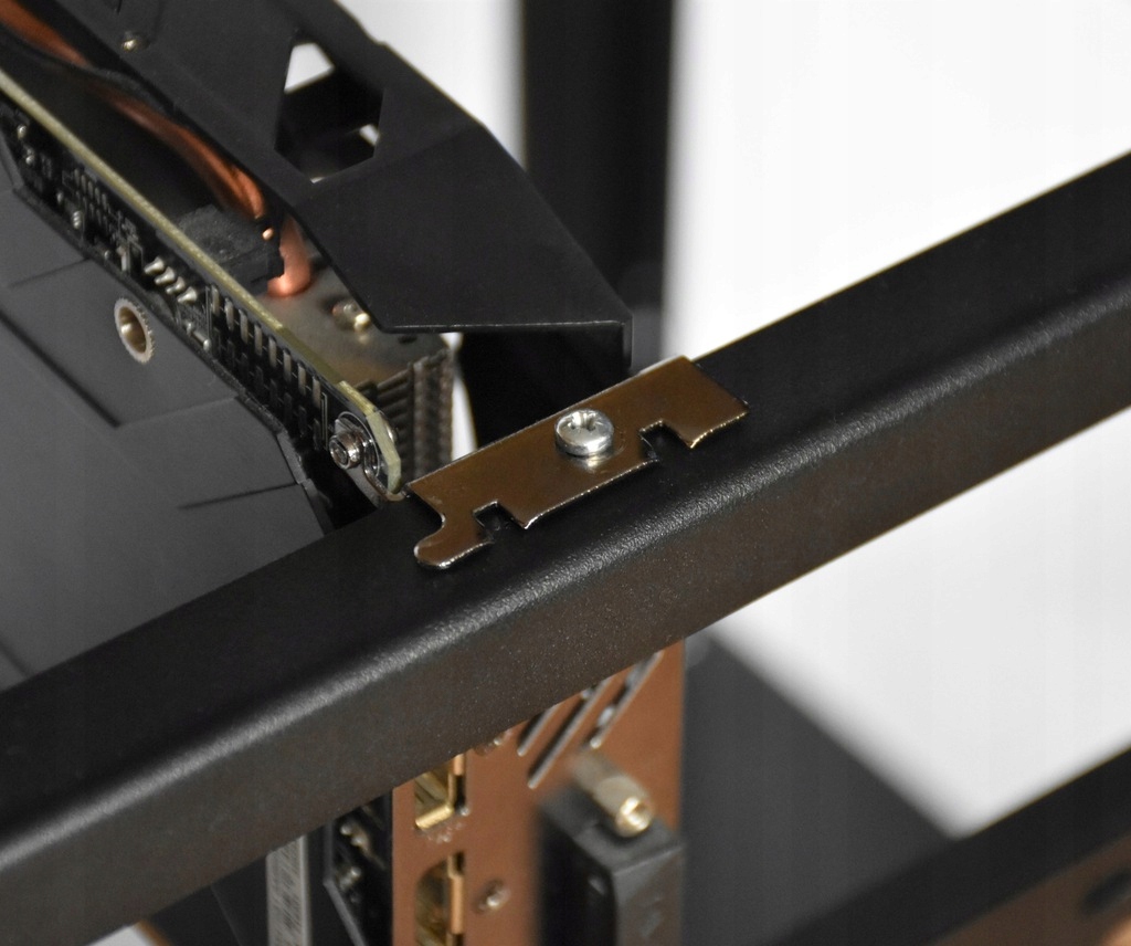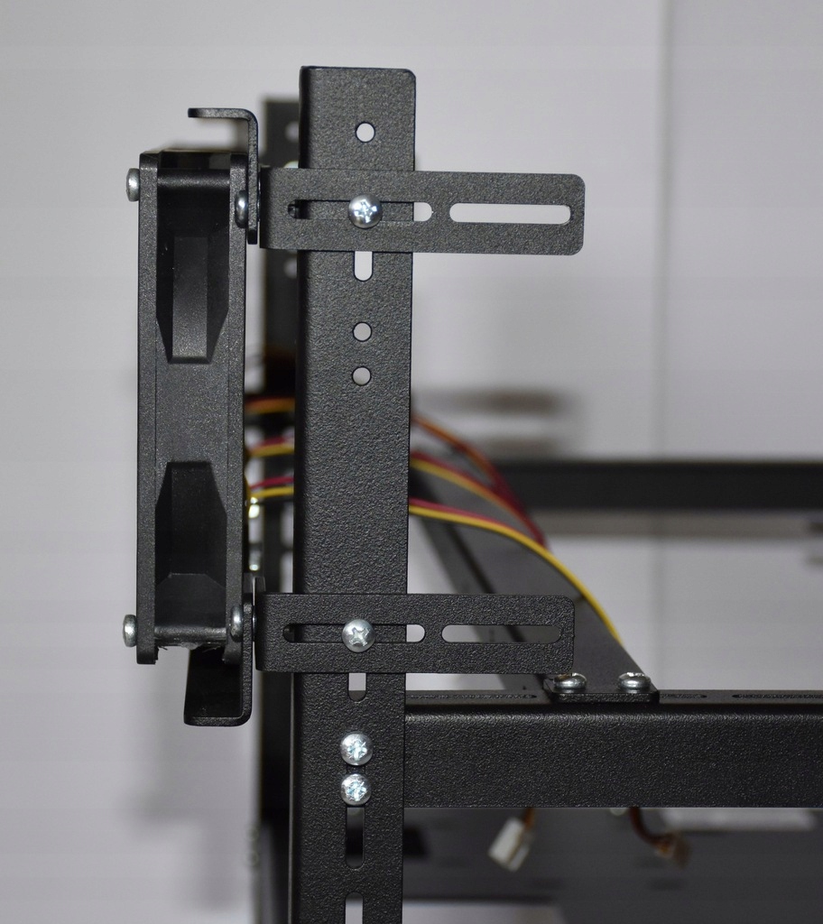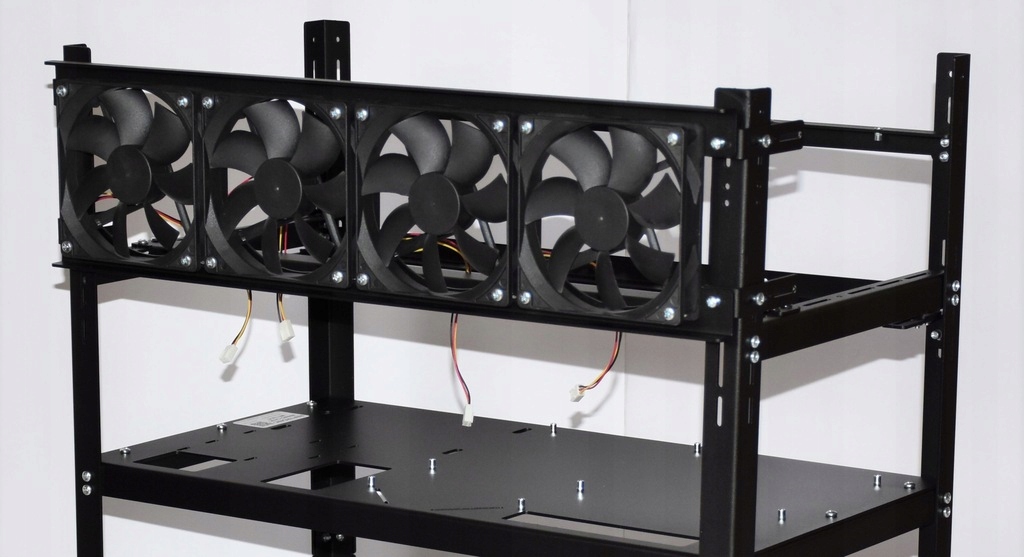- корпус дозволяє встановити 12 відеокарт і 4 блоки живлення (два поруч материнська плата та два для задніх ніжок корпусу)