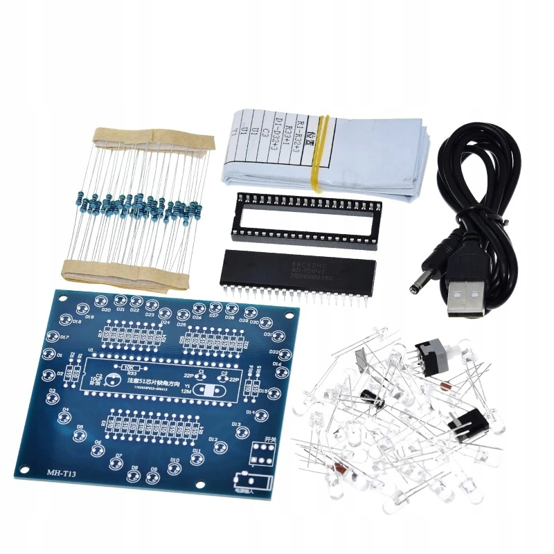 Системи мають схему монтажу, надруковану на платі. Необхідно звернути увагу на полярність у випадку таких елементів, як конденсатори, діоди, транзистори. У світлодіодів довша ніжка плюс +, параметри більшості елементів описані на корпусі. Резистори можуть мати маркування смугами; їх опір і допуск можна прочитати за допомогою калькуляторів, доступних в Інтернеті, або виміряти за допомогою лічильника. Порядок складання, як правило, довільний, в залежності від планування спочатку збираємо найменші елементи.