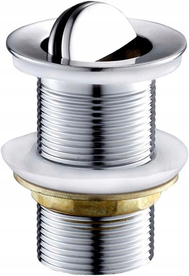 Хромована заглушка для умивальника з латуні, хромована, проста в установці, різьба 1'1/4 (підходить до сифону), автоматичне закриття зливу води, сучасна і стильна для умивальника - призначена. для умивальників з переливом