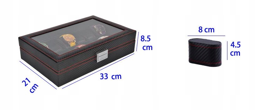 У коробку поміщається 12 годинників - ніжних, масивних або спортивних (ширина корпусу до 5 см - інакше годинники можуть торкатися один одного). з собою)