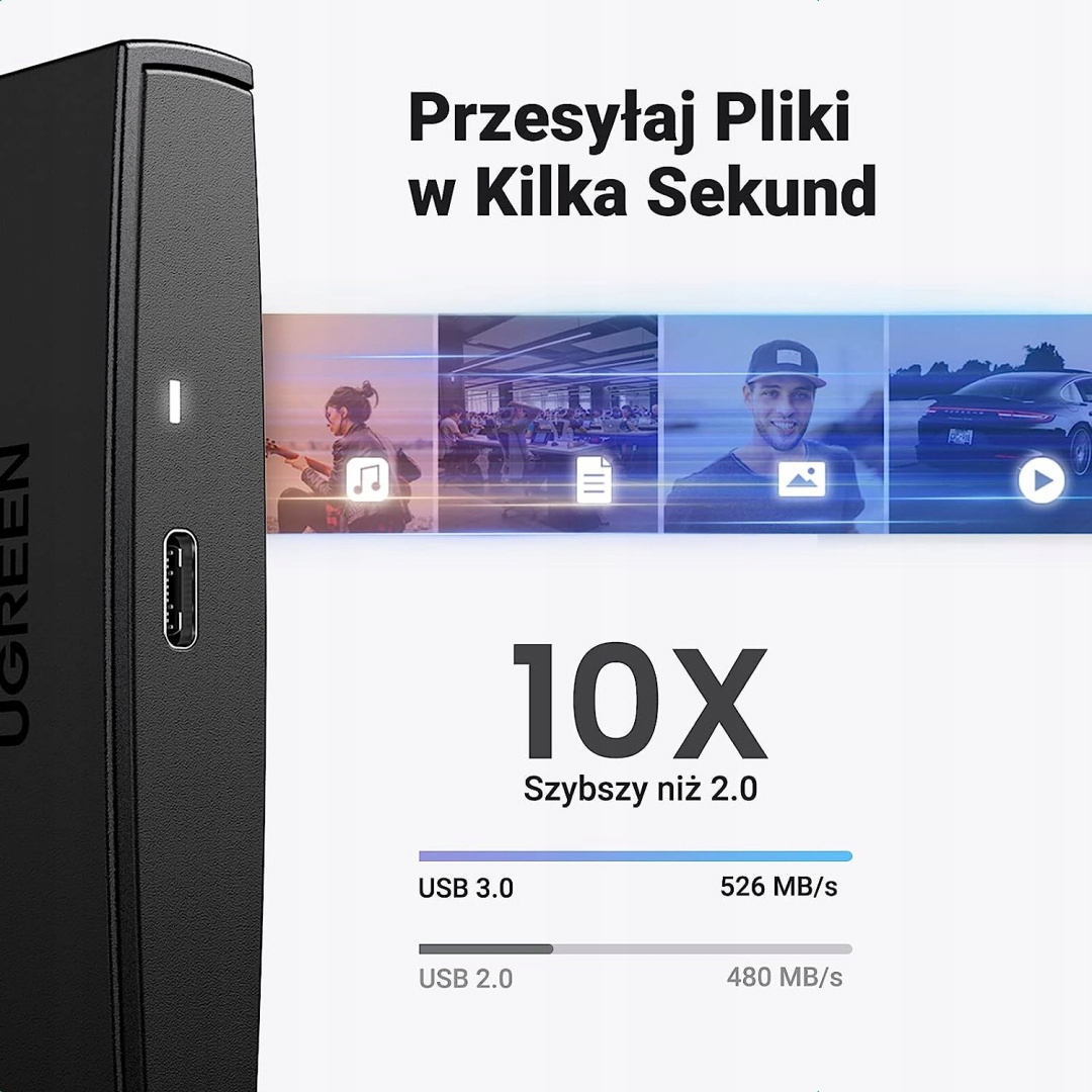 Надшвидкісний 6 Гбіт/с: оснащено портом USB C 3.1 Gen2 і найновішим роз’ємом SATA III, підтримує швидкість передачі даних до 6 Гбіт/с зменшує використання ЦП і затримку передавання завдяки протоколу UASP. Надсилання HD-відео займає лише кілька секунд.