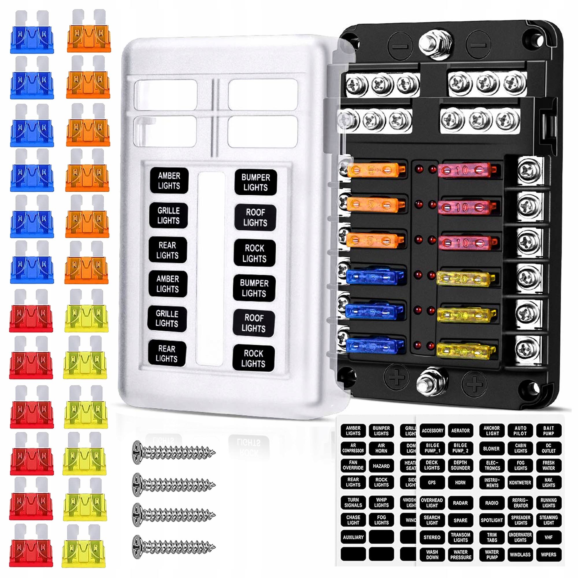 Кожна коробка поставляється з 24 пластинчастими запобіжниками з різними значеннями струму - завдяки цьому ви можете негайно адаптувати установку до своїх потреб. Крім того, набір містить практичний аркуш описових наклейок, який полегшить позначення ланцюгів і швидкий пошук конкретних засобів захисту, якщо це необхідно. Це зручне та професійне рішення, яке економить ваш час та підвищує прозорість встановлення.
