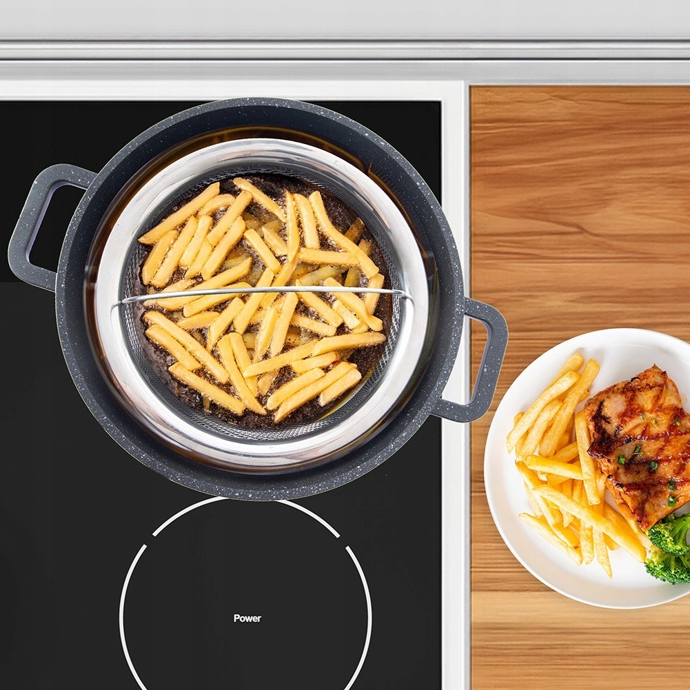⭐ Універсальне використання - особливо рекомендовано для смаження картоплі фрі, цибулевих кілець, овочів на грилі, нагетсів і пончиків. Кошик також дозволяє проціджувати макарони та овочі.