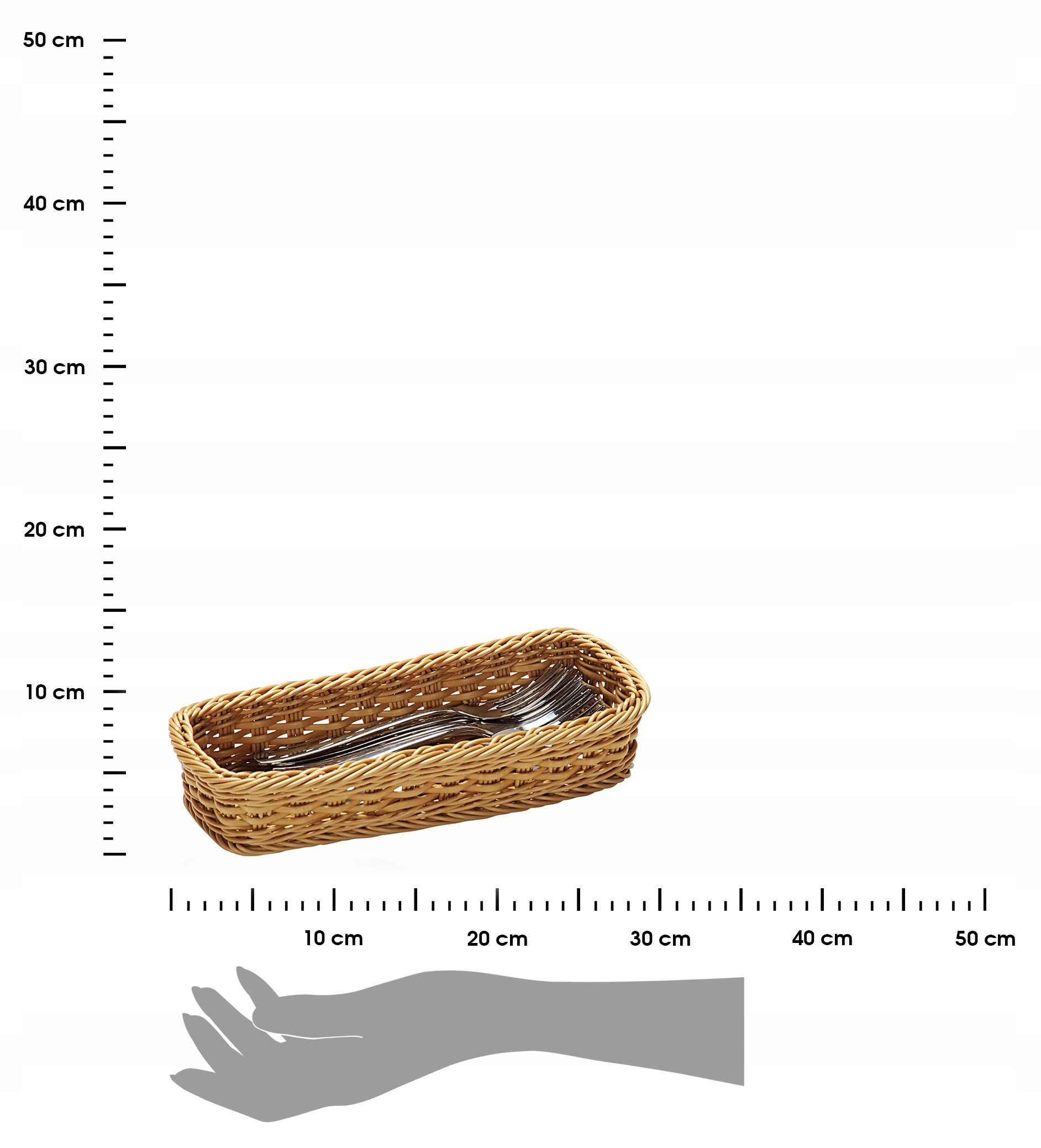 Практичний, подовжений кошик Кеспер для легкого зберігання столових приборів. Він чудово працює як організатор на кухонному прилавку та на столі під час сімейних святкувань. Він також виконуватиме свою функцію в ресторанах. У контейнера буде тримати ножі, вилки, ложку та інші аксесуари, які у вас завжди буде під рукою. Кошик був виготовлений з високоякісного пластику в плетеному вигляді. Це легко чистити і стійкий до пошкоджень. Його класичний зовнішній вигляд робить його прекрасною прикрасою будь -якого столу або верху на кухні. Це не лише функціональне доповнення, але й декоративний елемент дизайну інтер'єру.