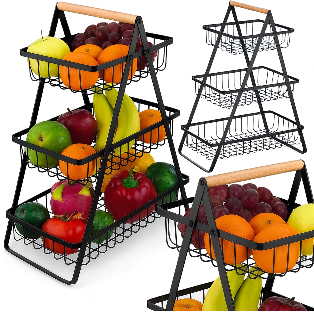 Ви шукаєте елегантний і практичний спосіб зберігання фруктів і овочів? Наш 3-ярусний металевий кошик – ідеальне рішення! Сучасний дизайн у стилі лофт і міцна конструкція роблять його ідеальним для будь-якої кухні, їдальні чи вітальні.