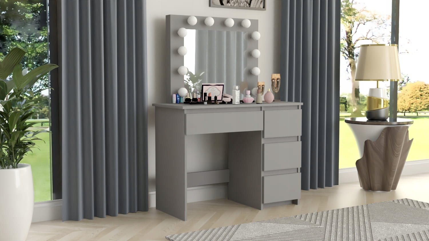 Освітлення забезпечить комфорт під час використання туалетного столика. Він буде світлим, а колір його нейтральним. Запевняємо вас, що це найкраща модель туалетного столика в нашій пропозиції.