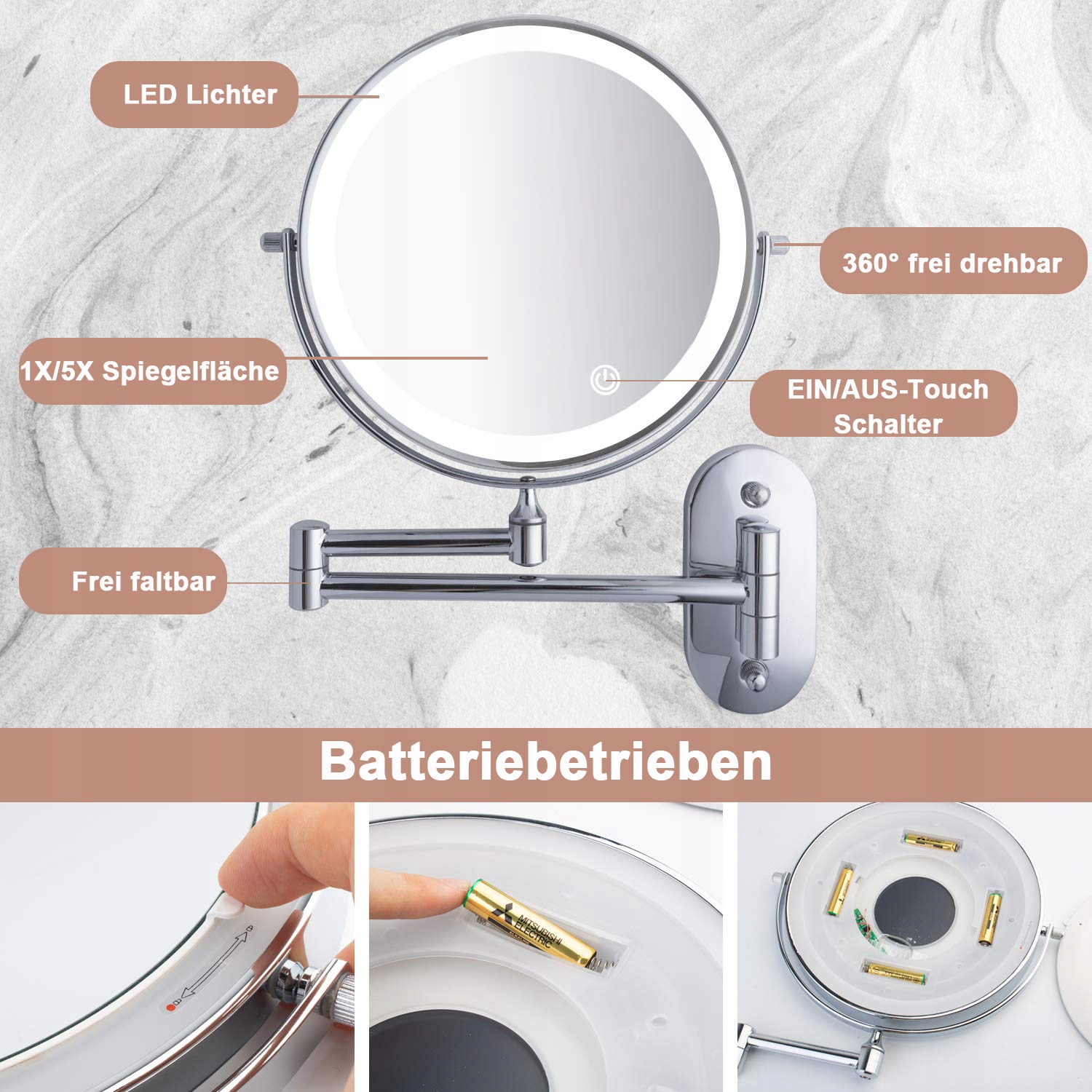 Косметичне дзеркало з збільшенням світлодіодного освітлення 1x/5x, дзеркало ванної кімнати