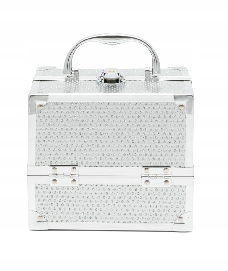 КОСМЕТИЧНИЙ КУФЕР ДЛЯ ЛАКІВ СРІБНА КОСМЕТИКА ЗІ СТРАЗАМИ МАЛЕНЬКИЙ MOLLYLAC