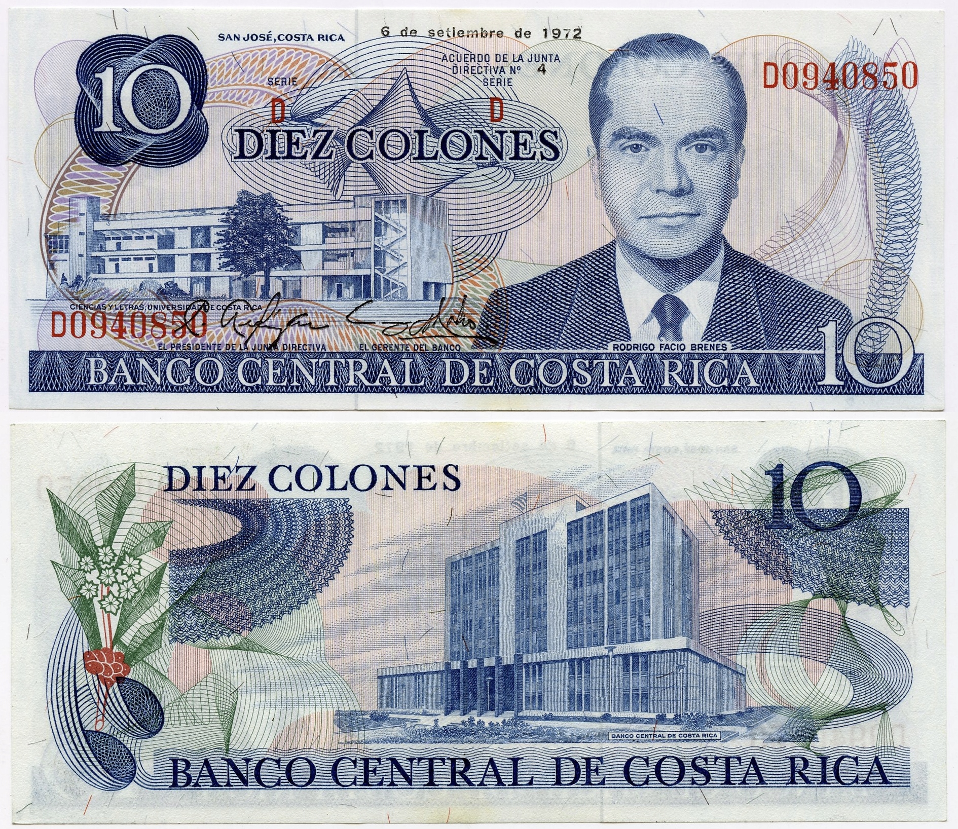 КОСТА-РИКА 10 колонів 1972 09/06 P-237a.1 UNC Рафаель Іглесіас Кастро
