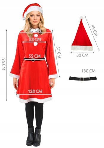 Різдвяне жіноче вбрання - сукня, пояс і капелюшок місіс Клаус, ідеально підходить для Різдва, Дня Святого Миколая, а також для вечірок, акцій тощо.