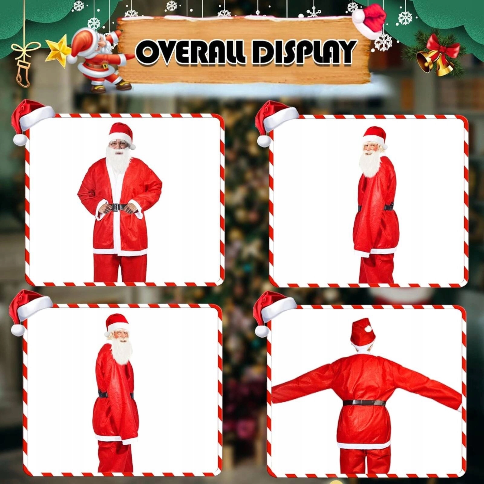 - Повний набір аксесуарів: на додаток до вбрання набір включає чорний пояс, який ідеально поєднується з червоним кольором костюма, капелюх із помпоном і накладну бороду, яка додає характер Санті Клаус.