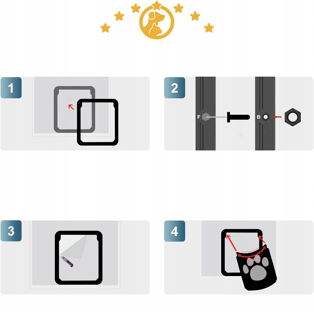 - 💚 Рекомендація: виміряйте розмір вашого вихованця, щоб порівняти, чи підходить він. Коли ви вперше користуєтеся москітною сіткою, порадьте своїх домашніх тварин використовувати двері для входу та виходу.