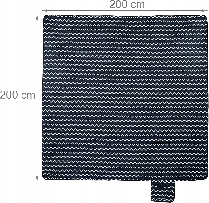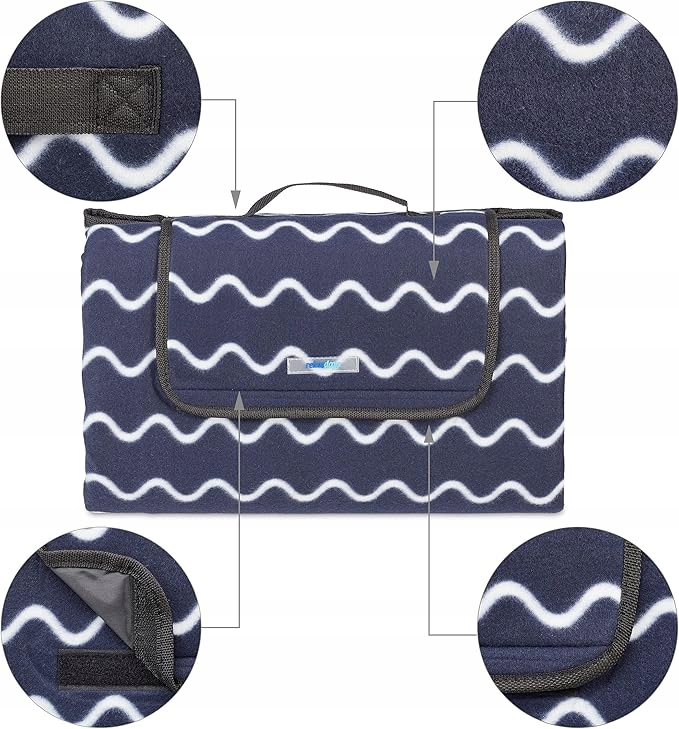 - Універсальний: м’яка ковдра для пікніка для всієї родини – красивий темно-синій і білий хвилястий принт