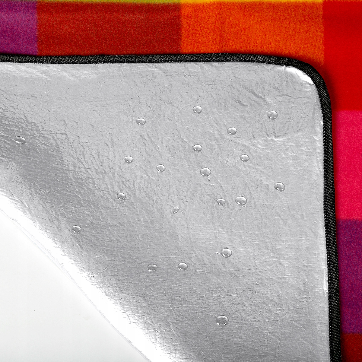 Це ковдра з настільки великою поверхнею (250x200), що на ній без проблем може розміститися вся родина. Це рішення набагато ефективніше, ніж дві менші ковдри. Немає ризику, що ковдри посунуть і хтось із наших речей впаде на траву або, що ще гірше, на пісок.